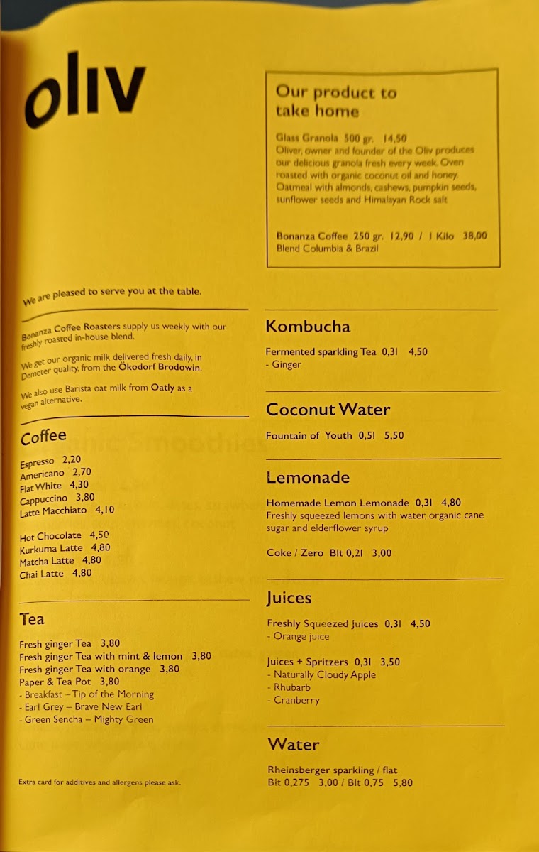 Nestled in the heart of Berlin on Munzstraße, Cafe Oliv is a charming spot that excels in offering a delightful dining experience. Whether you’re stopping by for breakfast, lunch, or just a cup of perfectly brewed coffee, the menu showcases an array of flavorful dishes and artisanal beverages.